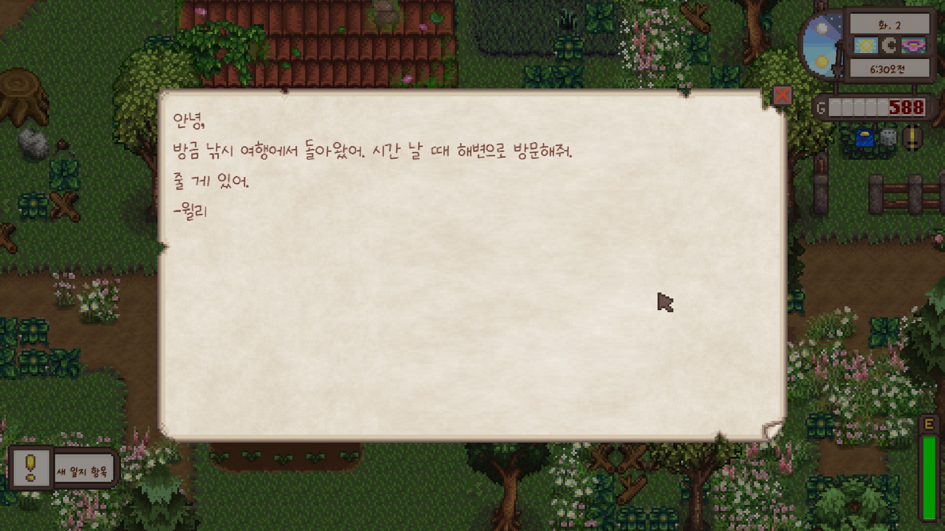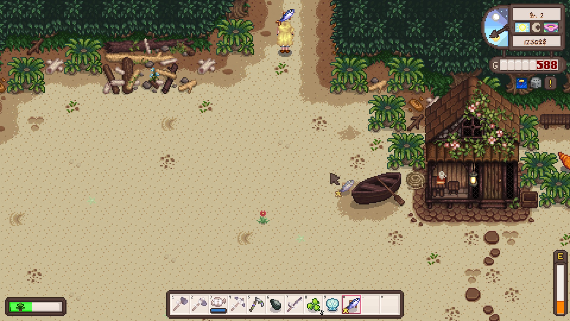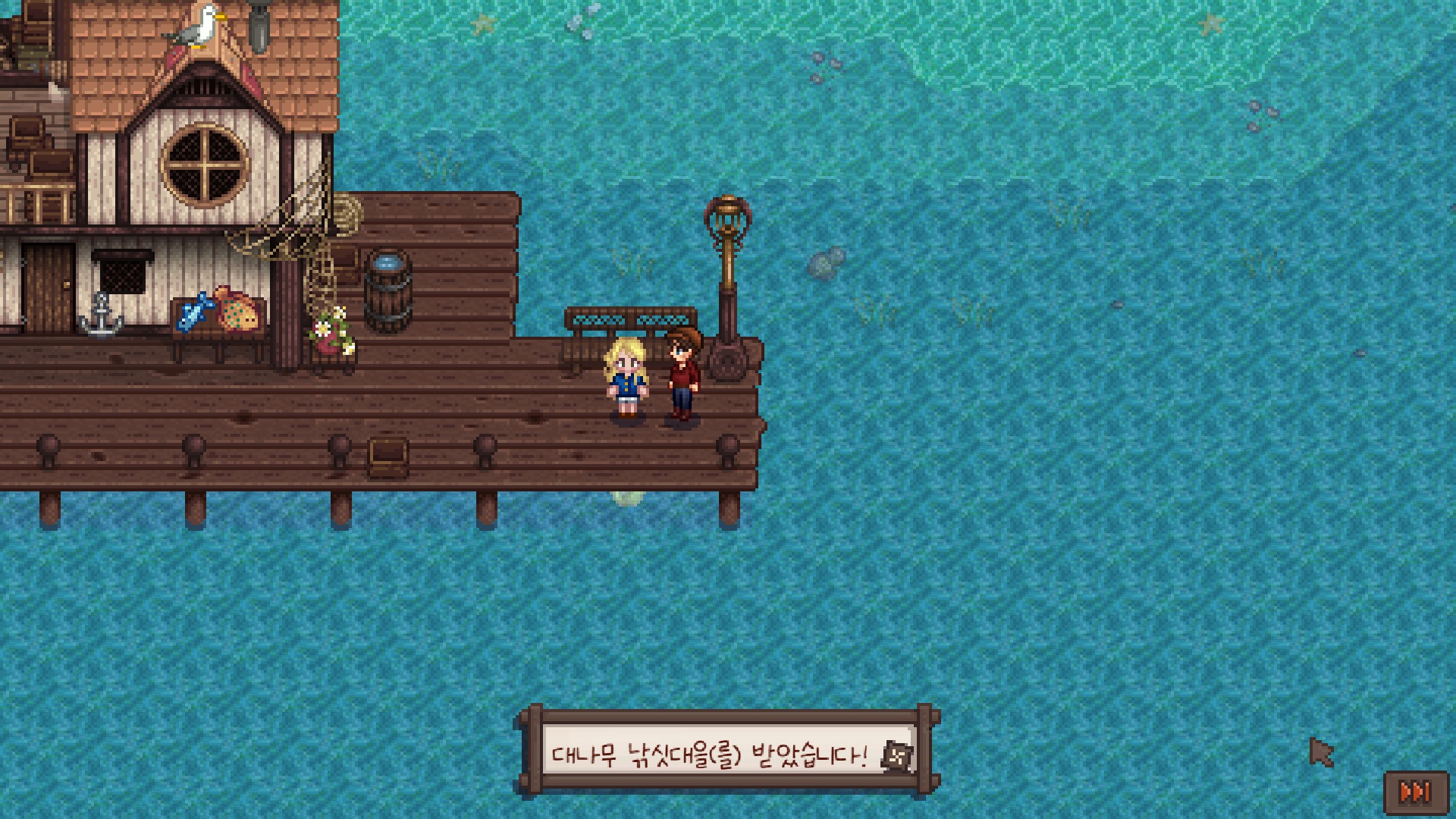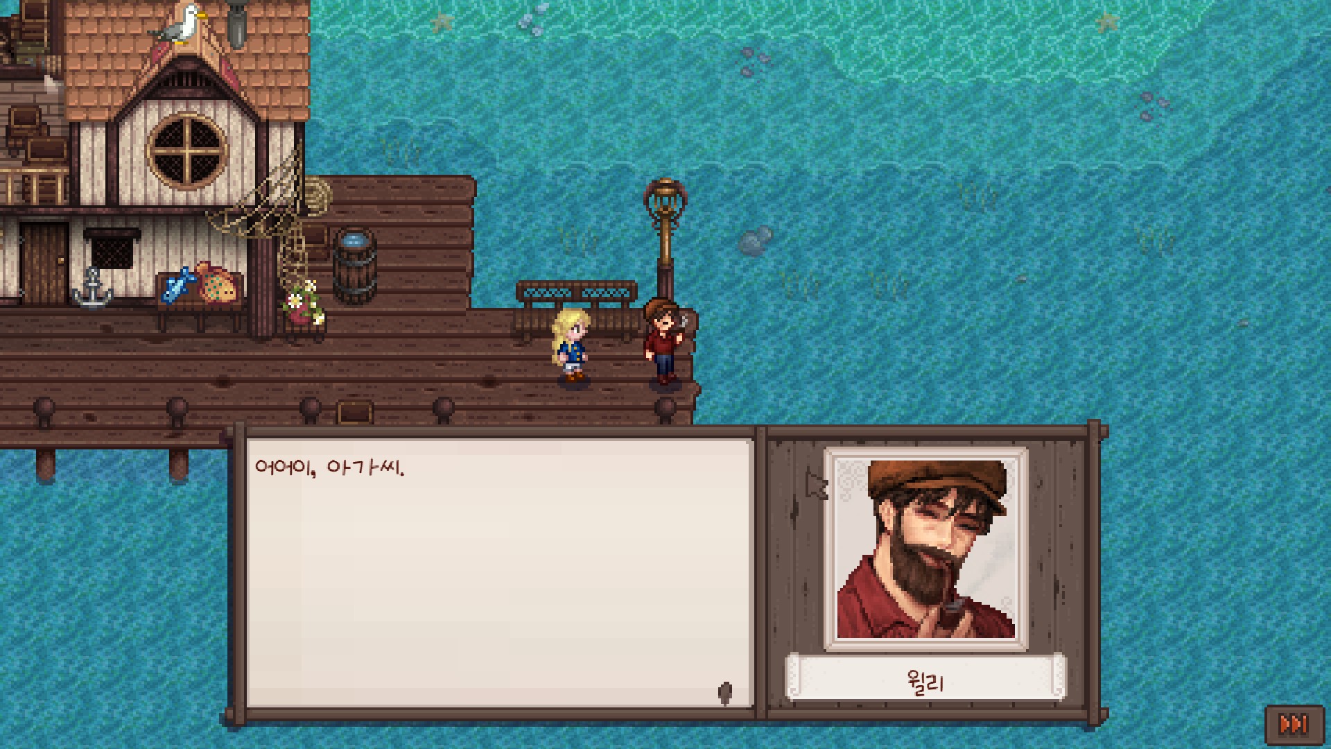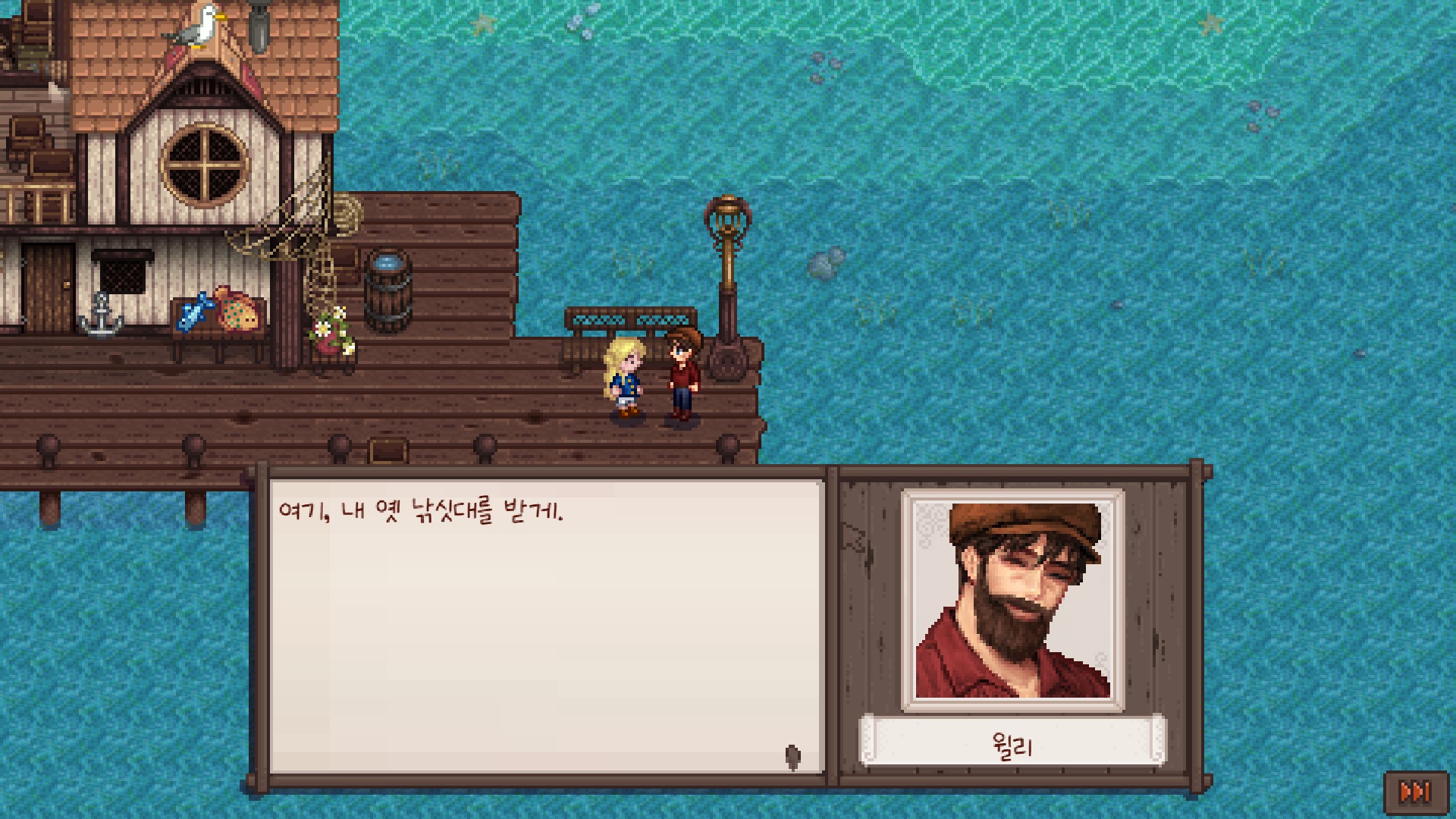 그렇게 해변으로 넘어와서 윌리를 만나고 대나무 낚시대를 획득!