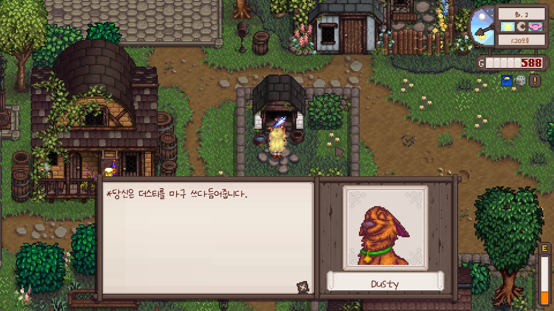 그리고 마을에서 더스티를 만남 근데 스샷 찍는 거 깜빡함 ㅜㅜ 초면이라 가까이 가면 물줄 알고 개쫄음.